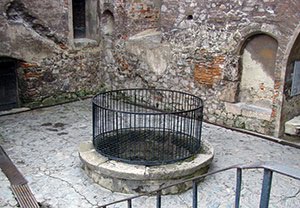 Fantana sapata In piatra de trei prizonieri turci.Calugarul spion, zidit de viu in peretele Turnului Capistrano