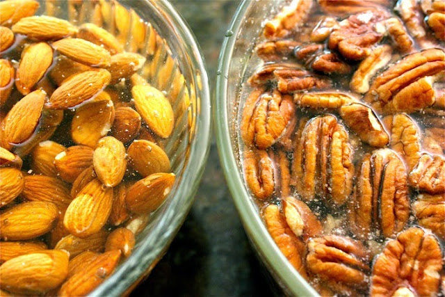 Daca nucile sau semintele pe care intentionati sa le consumati sunt de culoare maro ( de exemplu migdale,nuci,alune), datorita continutului ridicat de inhibitori ai enzimei, trebuie inmuiate in apa cateva ore bune inainte sa le consumati pentru a avea o cat mai buna digestie.